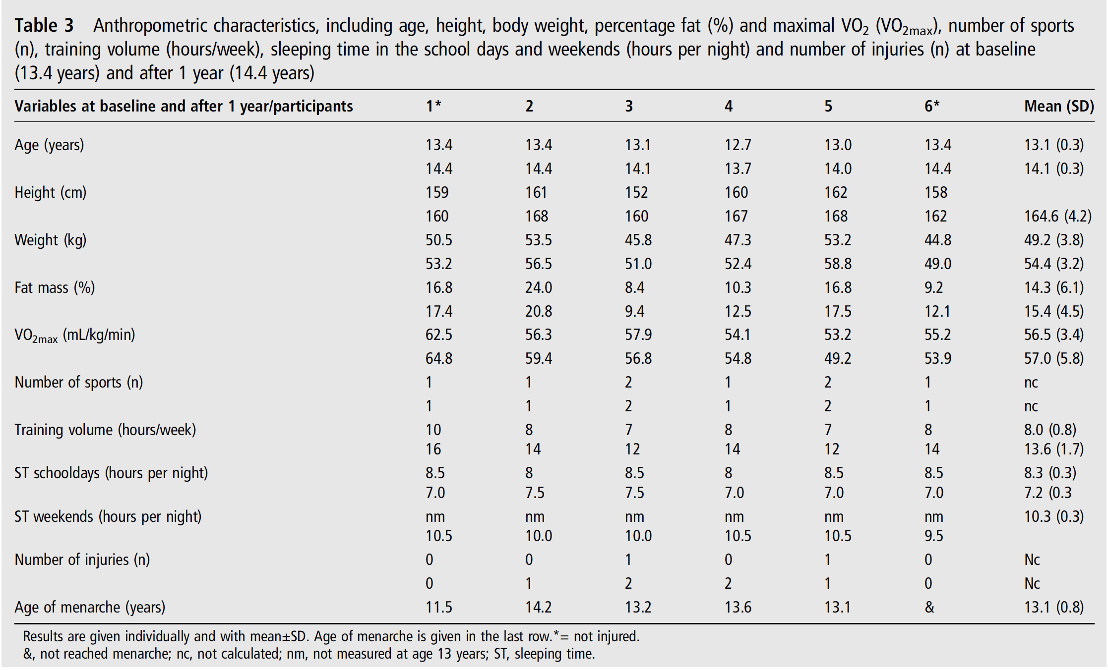 Utøverne opplevde en gjennomsnittlig økning i treningsvolum på 5.8 timer fra barneskolen til ungdomsskolen, samtidig som de sov en time mindre hver natt. De trente i gjennomsnitt 14 timer organisert trening + 1-2 kamper. En av de store utfordringene var derfor å få nok hvile. Tidligere forskning har vist at mangel på nok søvn over tid er en risikofaktor for idrettsskader.
